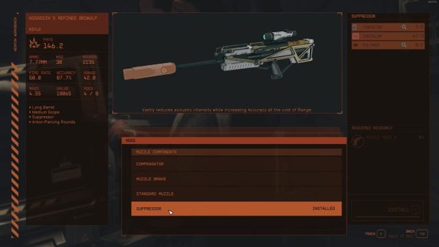 - Suppressor – A must have Mod to reduce the sound made when firing your rifle. If you don’t have this, enemies will hear you and Stealth will be impossible. GET THIS ASAP!