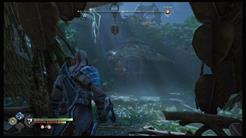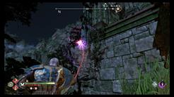 Down the wooden lift that takes you from the ritual site to the underground. Follow the linear path past the enemy creatures and the zipline to the west. Go down the ledge and turn right to climb the wall. Next to a dead body.