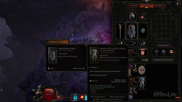 Also, you can change around the affixes, maybe remove one that you don’t want. It can be replaced with something else or removed completely to be applied to a different item. There are always ways to modify this even further but that crafting system is very easy to get into. It also allows you to adjust your build even further. As I mentioned earlier it’s quite an enjoyable aspect of the game. You can spend a lot of time using this system on bits of gear that you get because you’re always getting shard runes and glyphs as you play.